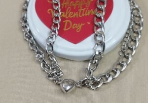 Conjunto pulsera plateada con dije corazon